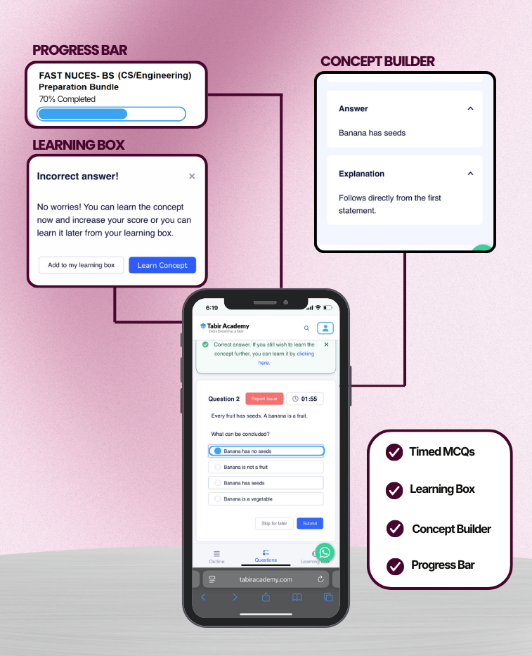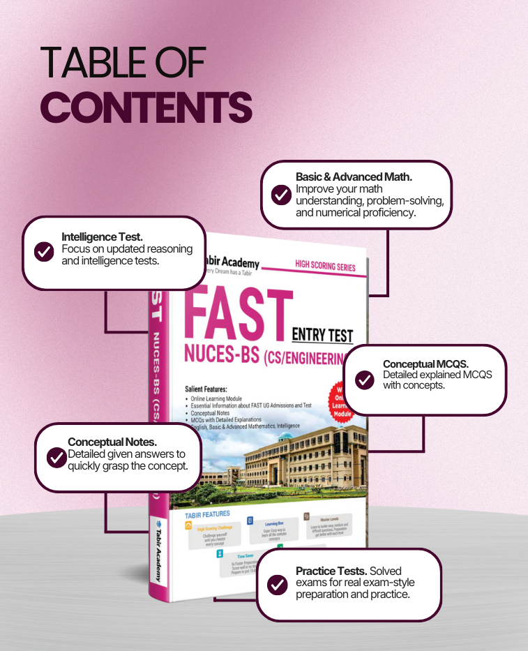 Mathematics (Basic + Advanced) From algebra and calculus to tricky word problems—learn it, practice it, and master it with chapter-wise drills and clear explanations. English We’ll help you sort out grammar, comprehension, vocab—and how to spot those sneaky MCQ traps FAST loves throwing at you. IQ/Intelligence Strengthen your pattern recognition, logic, and problem-solving through handpicked questions that mirror the real test.Here’s Why This Guide Just Works