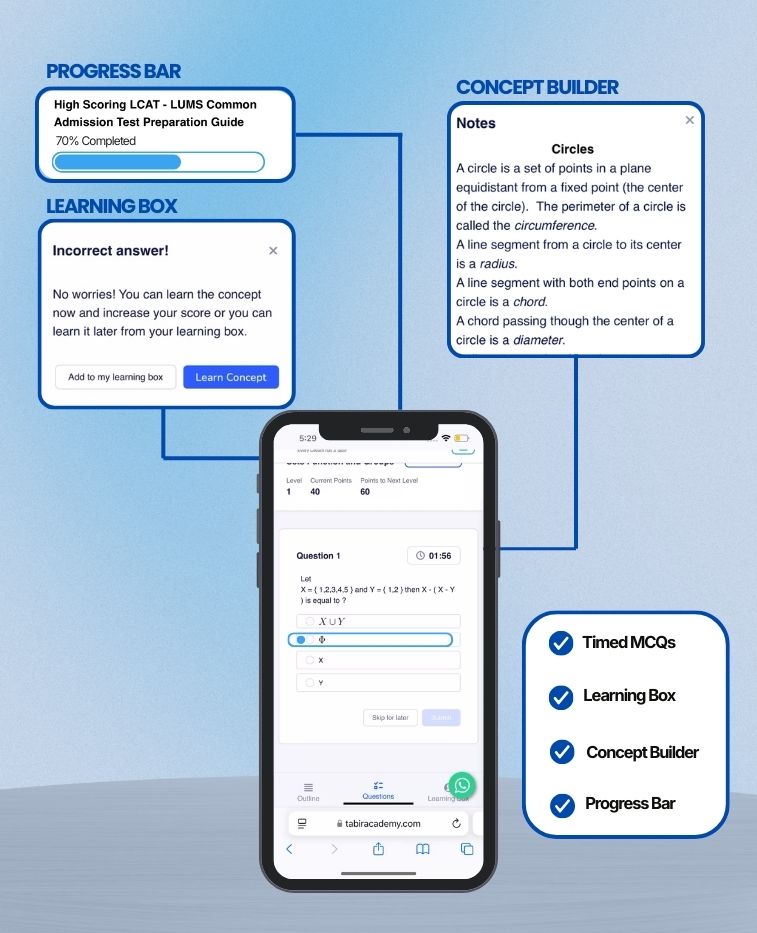 Master the LCAT (2nd Edition) by Tabir Academy is your all-in-one preparation solution for the LUMS Common Admission Test. Created for students aspiring to secure admission into LUMS undergraduate programs, this package brings together the Book, Online Course, 3 Full-Length Papers (FLPs), and Basic Mentorship—powered by Tabir AI—to deliver a smart, adaptive, and effective prep experience.