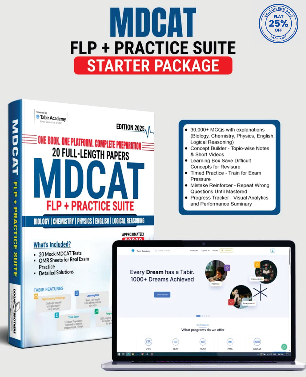 MDCAT Full Length Papers + Practice Suite Starter Package(with Tabir Online Learning Module) is available at Tabir Shop with the online learning module of Tabir Academy. This package will help students prepare and revise effectively for Medical & Dental College Admission Test. We are offering COD nationwide so order yours now!