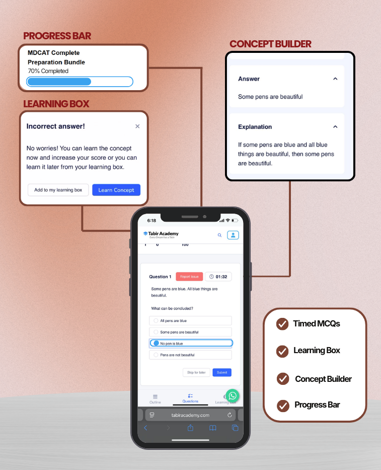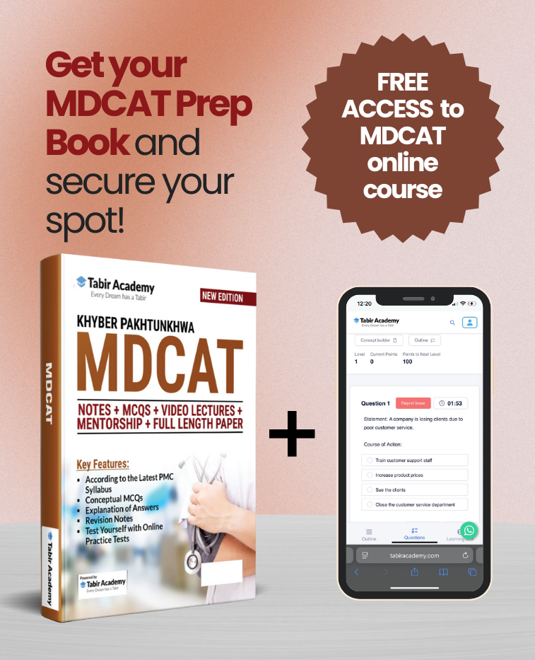 Online Learning Module by Tabir Academy: In addition to the physical book, Tabir Academy offers an online MDCAT Admission Test Learning Module that complements the preparation material in the book. The online module provides additional resources, including supplementary notes and explanations available online to deepen your understanding of key concepts.