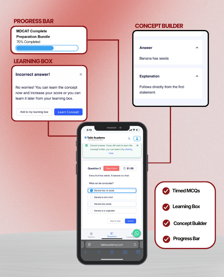 - Video Lectures: Tabir Academy enhances the learning experience by offering interactive and engaging video lectures. These lectures are designed to simplify complex concepts, making them more accessible and easier to understand. Whether tackling challenging topics in physics, chemistry, biology, or logical reasoning, the visual and auditory elements of the video lectures help students grasp difficult material more effectively.